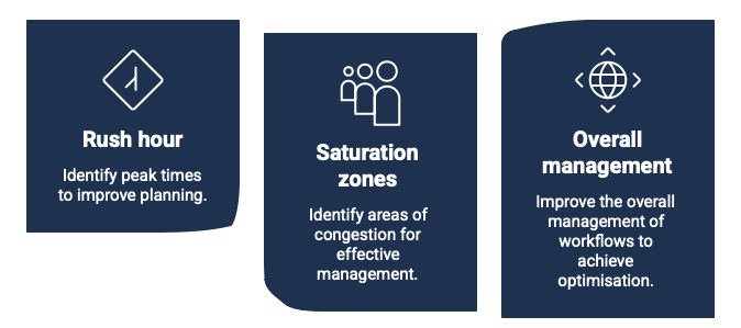• Identification of overcrowded areas and bottlenecks.