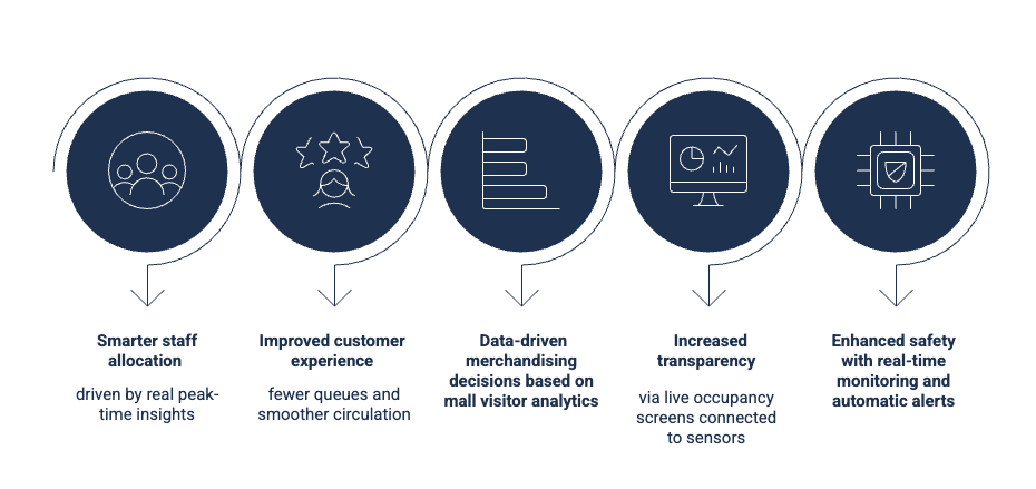 Thanks to mall visitor analytics, data replaces guesswork. Retailers gain a clear view of their performance and can identify continuous optimisation opportunities.