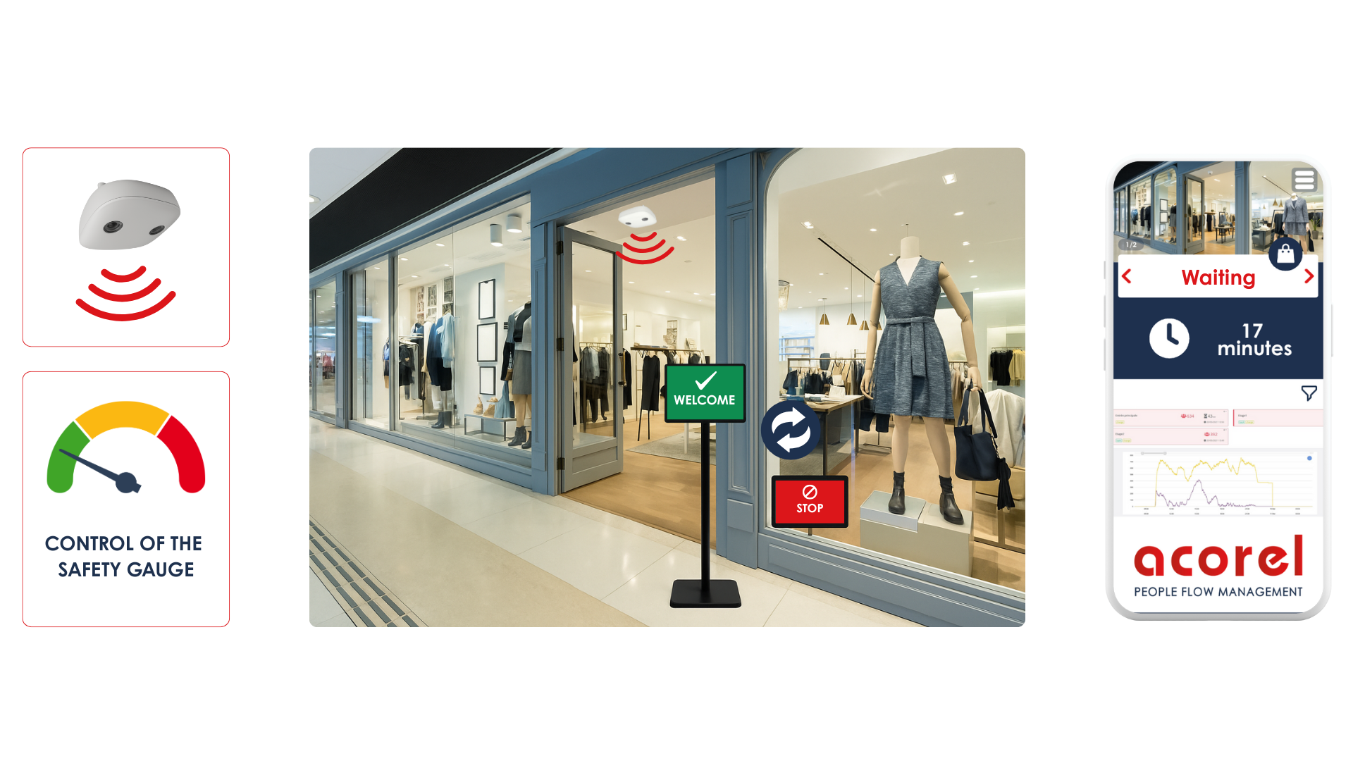 Acorel’s static sensors anonymous and GDPR-compliant measure footfall in real time, trigger alerts and integrate smoothly into any retail environment.